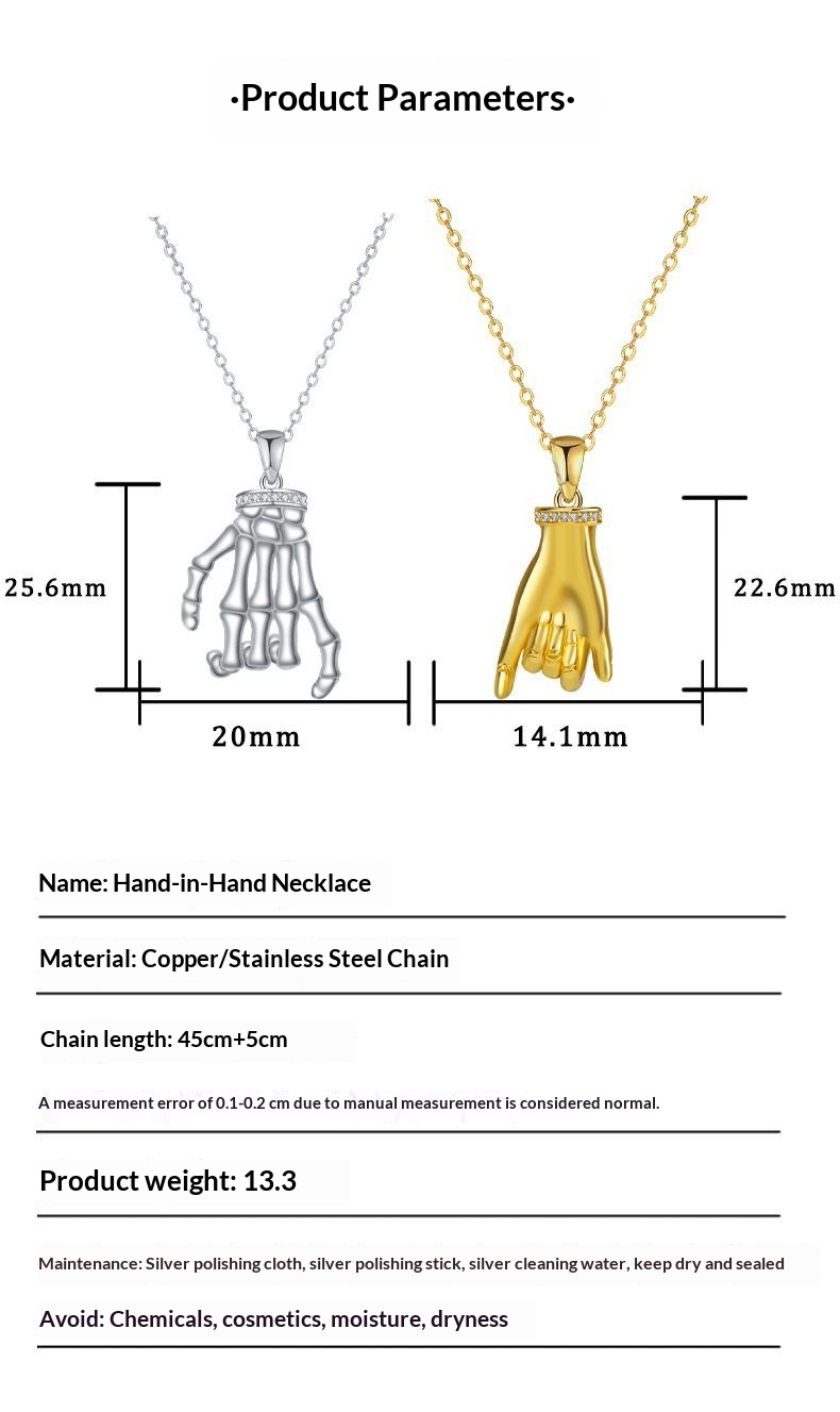Elegant DesignerStyle HandinHand Couple Necklace Set